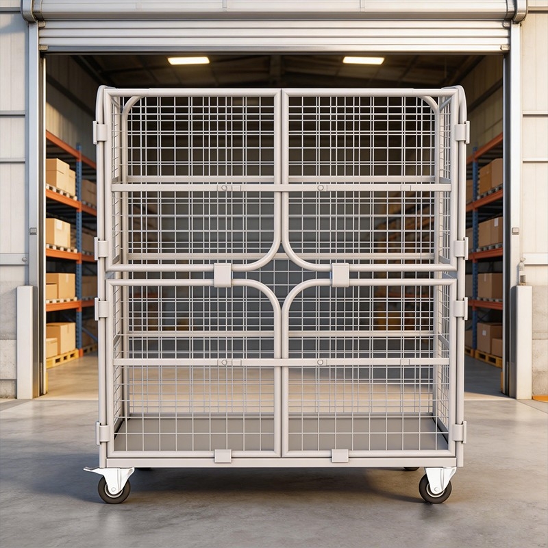 إن WL-RC-005 عبارة عن قفص لوجستي آمن وشبكي بالكامل بأبعاد 1100×800 مم مع أبواب قابلة للفصل وقاعدة معززة، مصمم لفرز وتخصيص مستودعات B2B بشكل آمن.