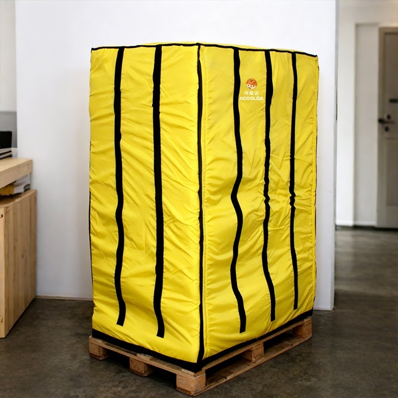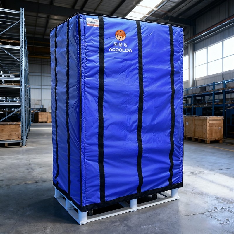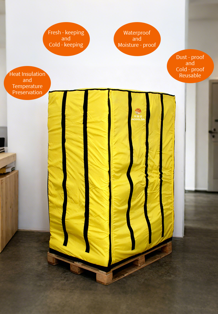 تُستخدم أغطية أقفاص اللف المعزولة وبطانات المنصات الحرارية على نطاق واسع في لوجستيات سلسلة التبريد. فهي تحمي الأطعمة المجمدة، والمنتجات الطازجة، ومنتجات الألبان، والأدوية، والمشروبات من التقلبات الشديدة في درجات الحرارة أثناء التخزين والنقل والتوصيل إلى الوجهة النهائية.