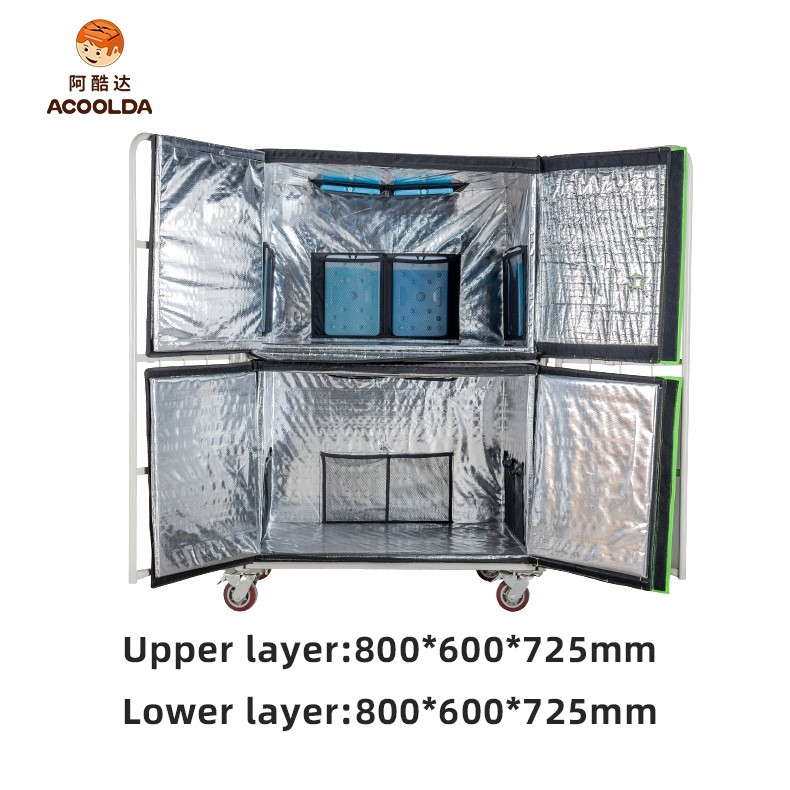 عربة لوجستية متنقلة معزولة بهيكل حراري مدمج، وشريط فيلكرو وسحاب، وتخزين مزدوج. حل سلسلة تبريد بدون طاقة للأغذية والأدوية وغيرها.
